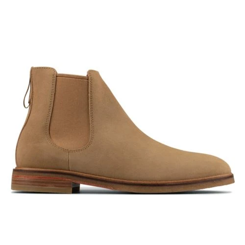 With smart casual appeal, these men’s boots take on the classic Chelsea profile with elastic gussets and heel loop tab. The dark sand suede is versatile and is great for transitioning between the seasons. A low heels adds to the iconic silhouette while a textile provides comfort against the foot.