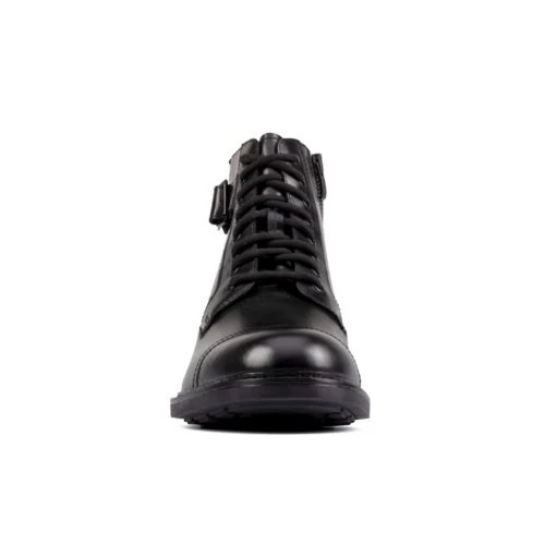 Make a subtle style statement in these crafted ankle boots featuring a premium black leather upper that wears beautifully and is finished with lace fastening, inside zip and strap and buckle detail. The rubber outsole is cleated to add durable edge and gr