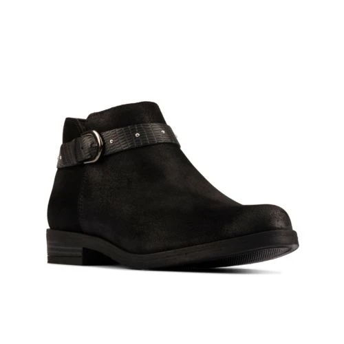 These low-cut, relaxed casual ankle boots are crafted from a black suede with weathered detailing on the toe and heel. Added interest can be seen with the leather strap and buckle detail, while an inside zip fastening allows for easy on and off. A durable sole unit with a 3cm heel offers subtle elevation to everyday wear and luxurious leather linings and sock teamed with Cushion Plus.