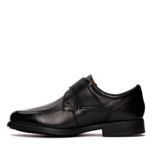 Traditional men’s slip on shoes in black leather, smart yet understated enough for everyday wear. The ruched moccasin stitching adds classic style, and the flat sole and inner cushioning provide comfort.