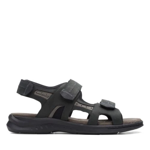 Clarks Sandals Black Nubuck Hapsford Trail A heritage-inspired design with outdoor influence, the Hapsford Slide sandal combines comfort with ground-breaking technology in its cushioned footbed and flexi sole. The result is a versatile profile that looks stylish in black nubuck.