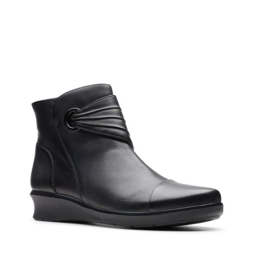 The Hope twirl by Clarks collection matches premium materials with comfort technology. Its full grain leather upper features a stretch-loop design adding elevated interest to this women’s bootie. The TR outsole adds ultra-lightweight support and durability, appropriate for all seasons. Inside, an Ortholite foot bed with cushion soft technology bring maximum comfort for long hours standing or walking.
