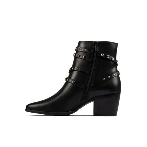 Contemporary and sophisticated Isabella Trim adds instant impact to your wardrobe. The smooth black leather upper is wrapped in strap, loop and stud embellishments while an elegantly tapered toe feels chic. The 6cm block heel adds wearable elevation and asymmetric zips give easy foot entry.