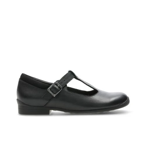 Jamie Sky in black leather – Go traditional with this T-bar silhouette made from black leather. A buckle fastening is a practical feature and offers a secure fit, while a flexible rubber sole is durable and provides functional grip and