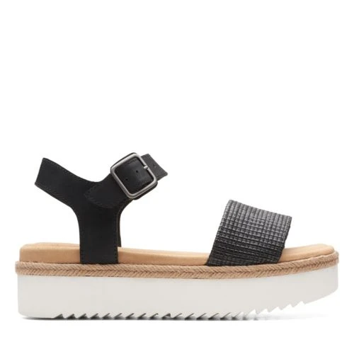 Clarks Outlet Dark Tan Lana Shore Stylish black materials create excitement in this new flatform sandal, Lana Shore, while an Ultimate Comfort footbed adds a layer of cushioning.