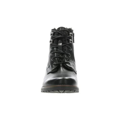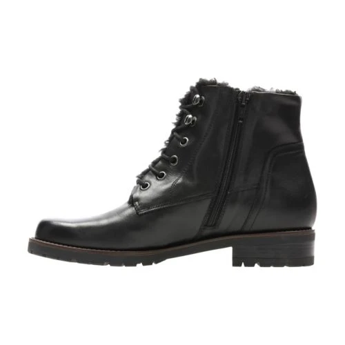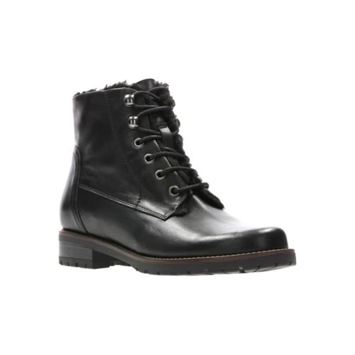 A cosy seasonal style, Magirics Honey women’s ankle boot takes inspiration from the lace-up working boot and features a warm fur-effect trim. Designed in black leather it feels durable and comfortable with a low 2.6cm heel.