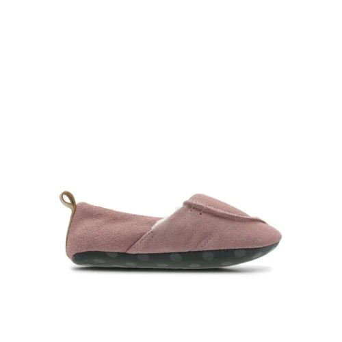 Maven Park, kids’ slippers, pink suede – With mini-me inspiration, these pink suede slippers use an asymmetric stitched seam and chunky stitch details for a distinctive look. A teddy fleece lining offers a cosy feel perfect for colder months, while pods on the sole are both fun and functional. Finished with natural tan leather tabs for easy on and off.