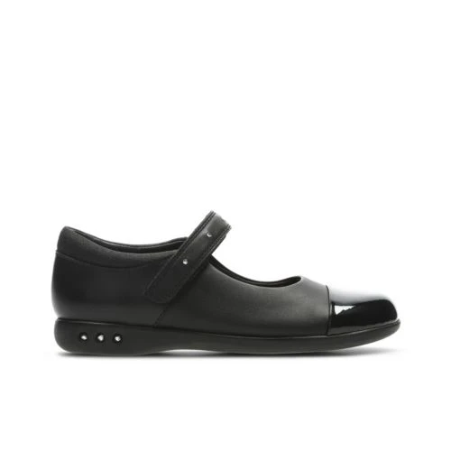 Prime Walk, girls’ school shoes, black leather – Giving the traditional Mary Jane silhouette an update, Prime Walk sees a black leather upper mixed with a patent leather toe cap, subtle diamante details on the riptape