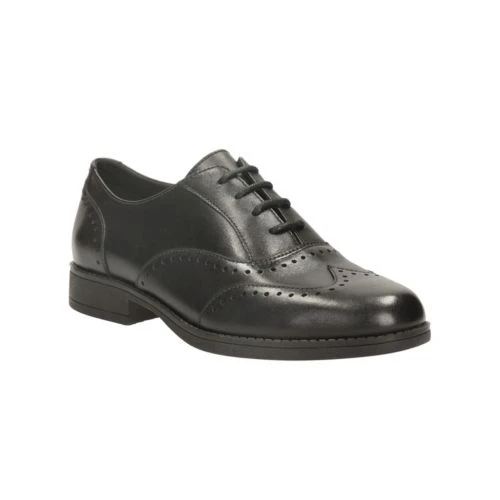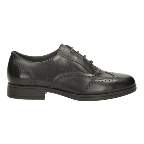 Girls can embrace the popular man tailoring trend with these lace-up brogues that are perfect for school or adding a fashionable twist to formalwear. An almond shaped toe adds a feminine twist while perforations adorn the black leather upper.