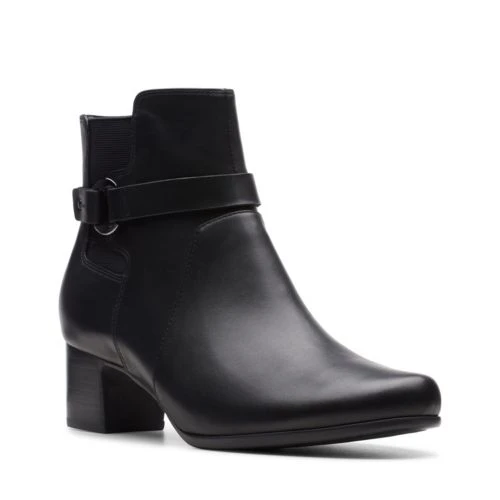 From our Unstructured collection, these women’s ankle boots are crafted from a premium black leather with our C-Shell technology offering waterproof properties. With an inside zip and elasticated panel for easy on and off, these boots offer a sophisticated look and feel with the strap and silver hardware. A 5cm heel provides stability and wearable height and a leather sock ensures luxurious comfort underfoot.