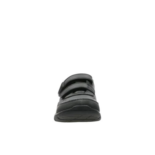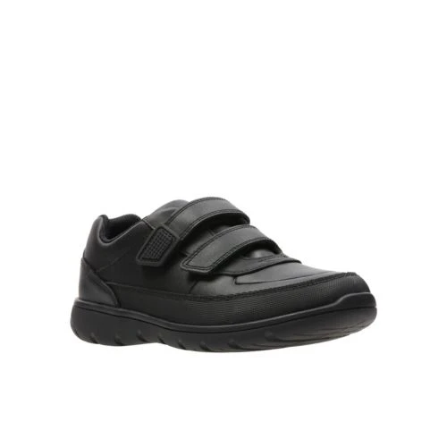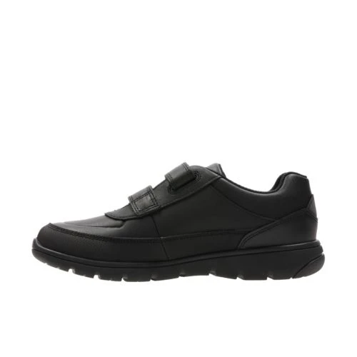With sporty details, these smart black leather shoes are ideal for school. Practical features include adjustable riptape fastenings, high abrasion mud guards and a durable rubber sole with flex points to enhance natural movement. These shoes are finished
